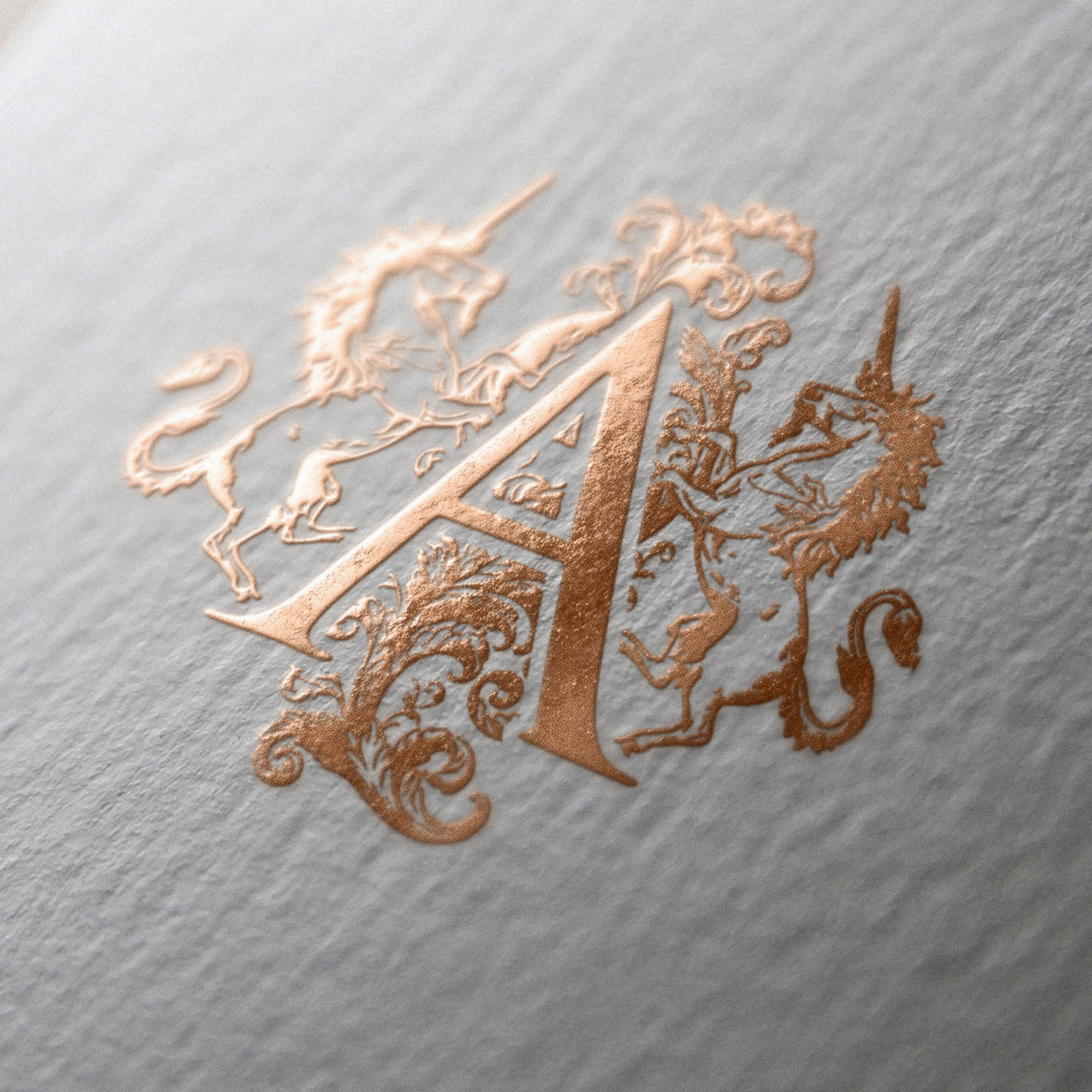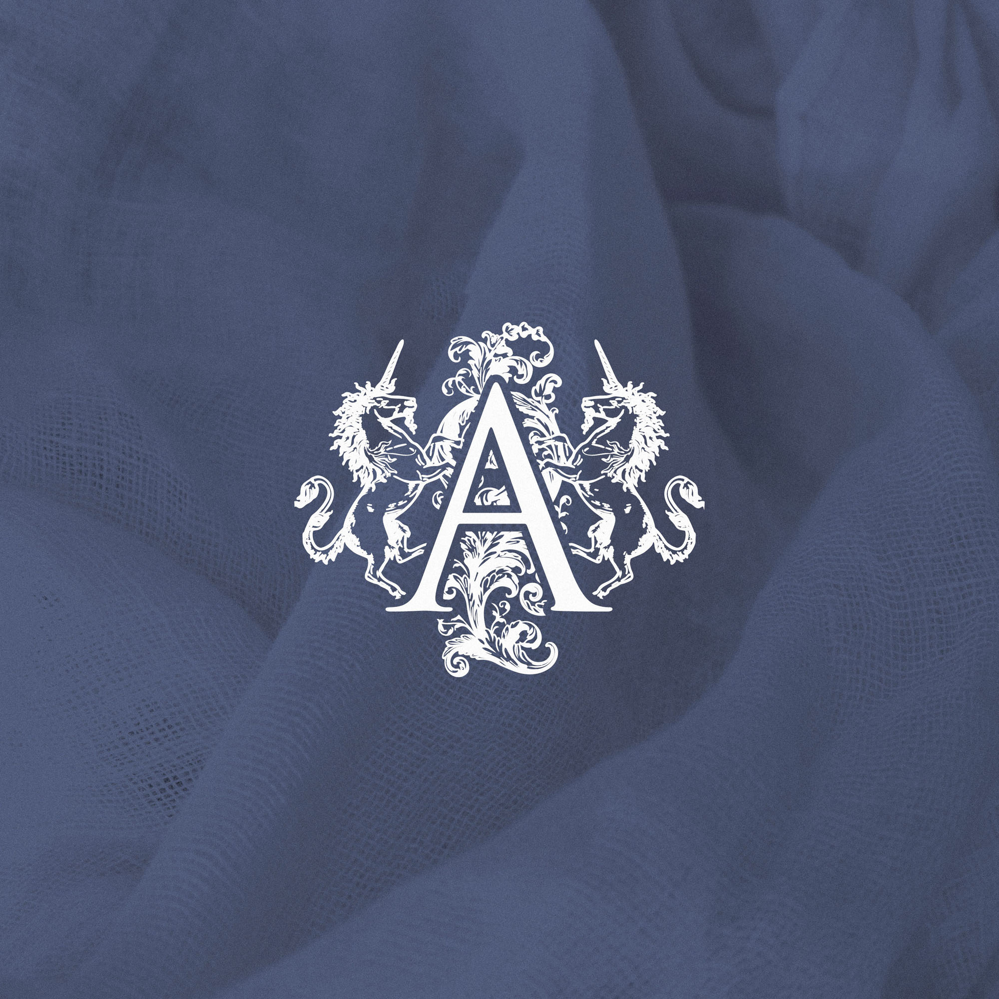 - Heritage Brandmark: A crest-style emblem featuring twin unicorns and ornamental detailing around a dignified “A,” crafted to read confidently from reception signage to digital headers.