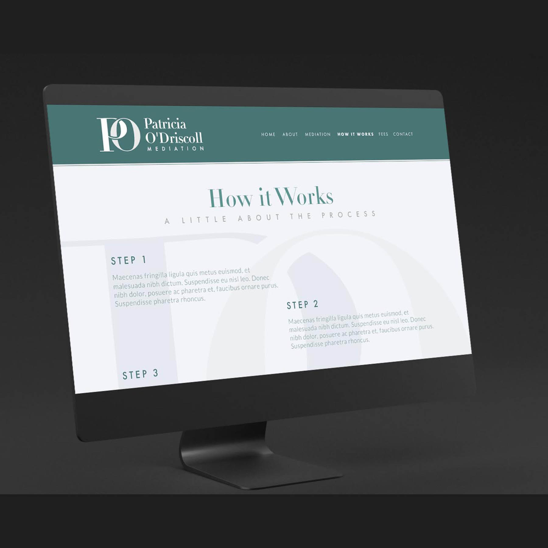 I was commissioned to create the new brand identity for Patricia O Driscoll Mediation, along with front end website design (Designing the layouts, look and feel of a website, but then passing the concepts on for a developer to build).