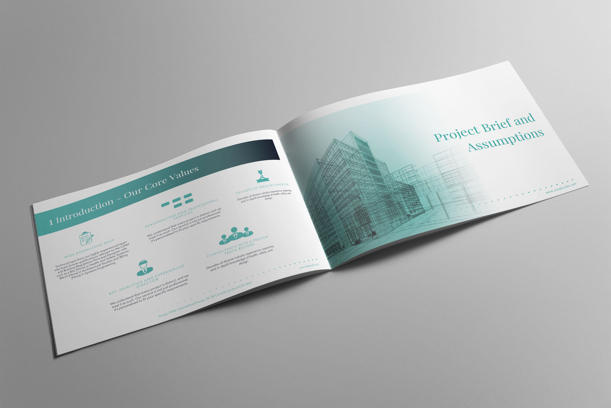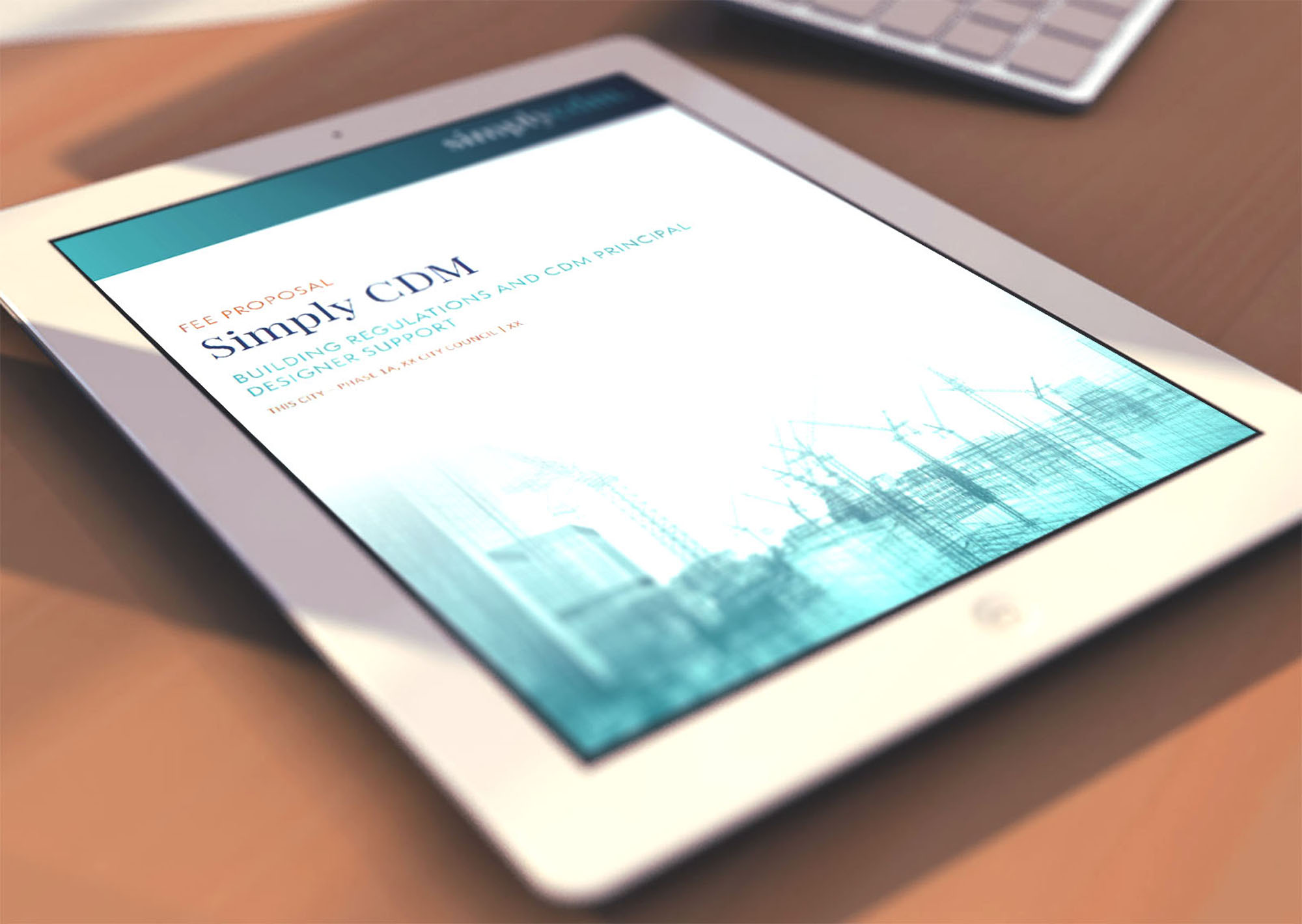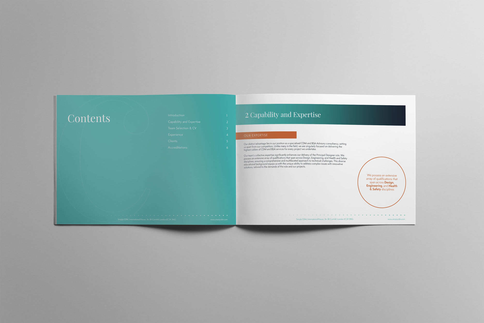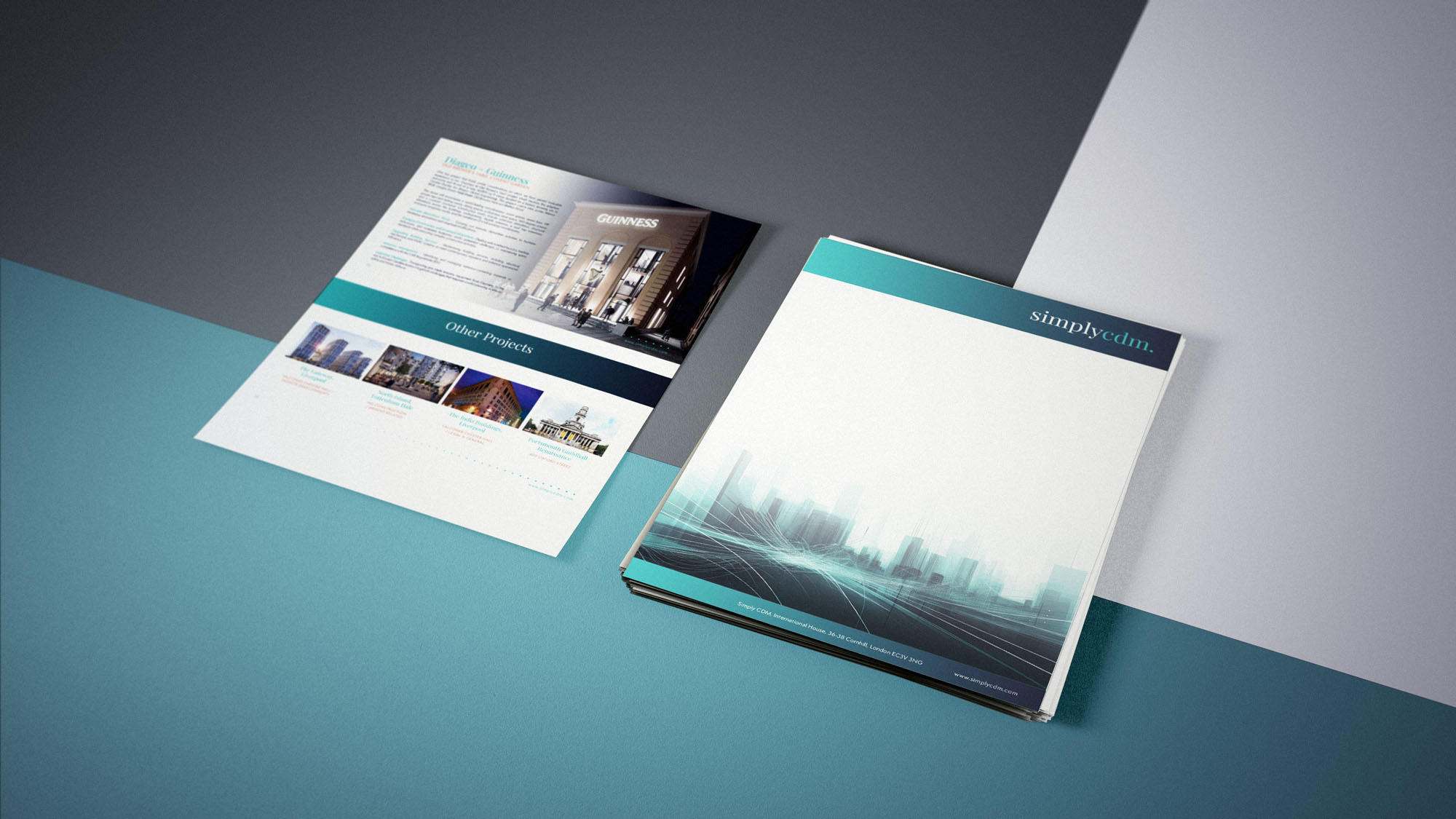Beyond the core identity work, I had the opportunity to support the Simply CDM team in designing a number of live materials. In some cases, this involved creating flexible templates to allow for easy updates internally; in others, fully bespoke pieces were developed to suit specific content, audiences or bid requirements. This approach ensured the brand could be applied efficiently day-to-day, while still allowing for a more tailored, considered finish where needed.