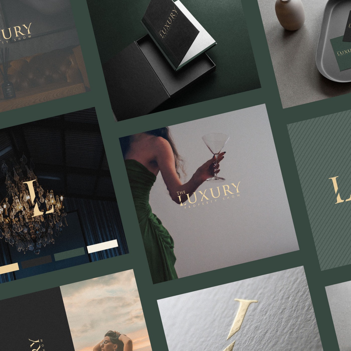 Brand Identity Design for The Luxury Property Show; one of Europe’s leading luxury property events. The Logo features a classically elegant font with a modern twist, while the colour palette of british racing green, soft gold and charcoal / matt black feel rich and indulgant.